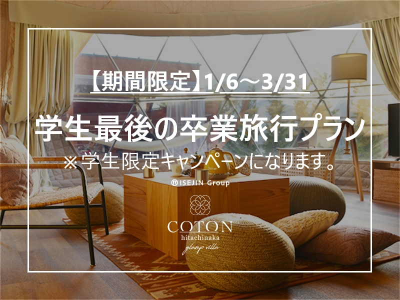 チェックイン時、全員分の学生証をご提示頂くだけでお得にグランピングが楽しめます。