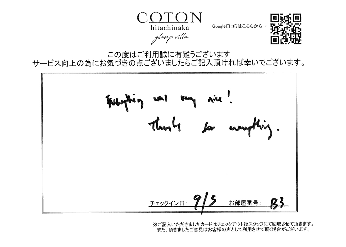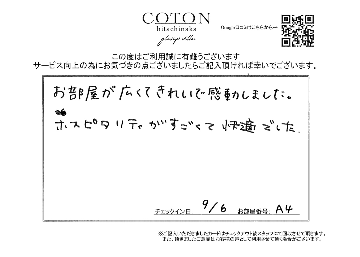 COTONさんの雰囲気に惹かれて宿泊を決めました。