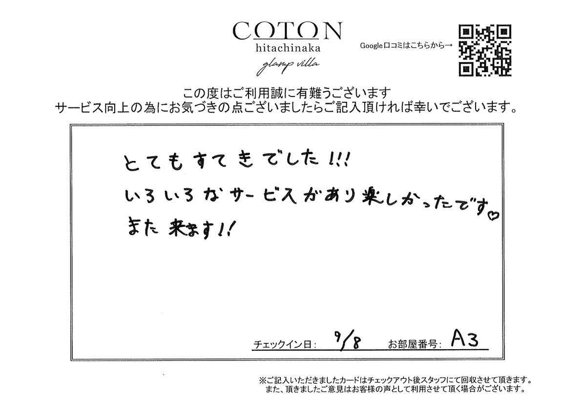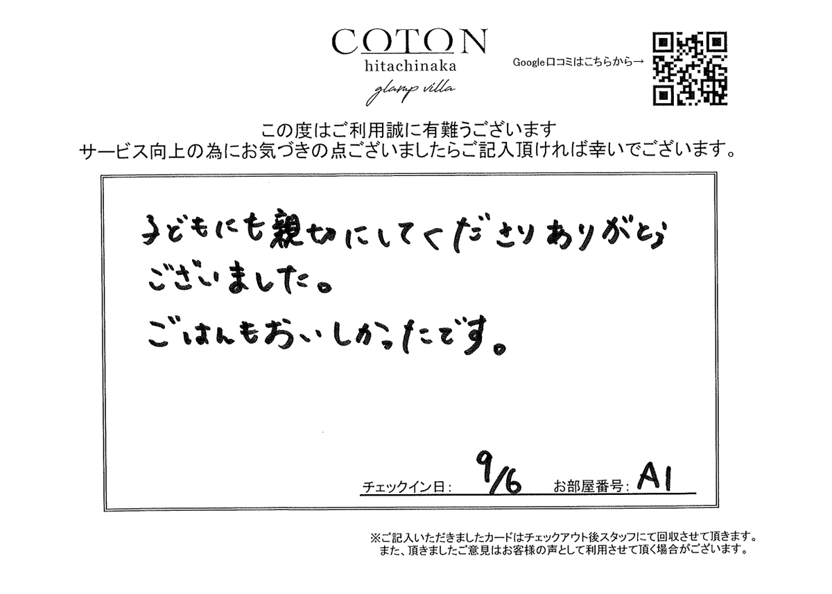 子供達がメインで過ごせる宿泊先を探していて COTONを予約しました。