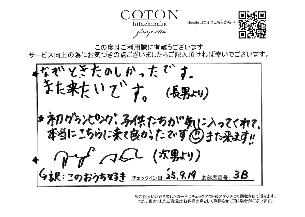 家族の良い思い出になりました。ぜひまた利用したいです!