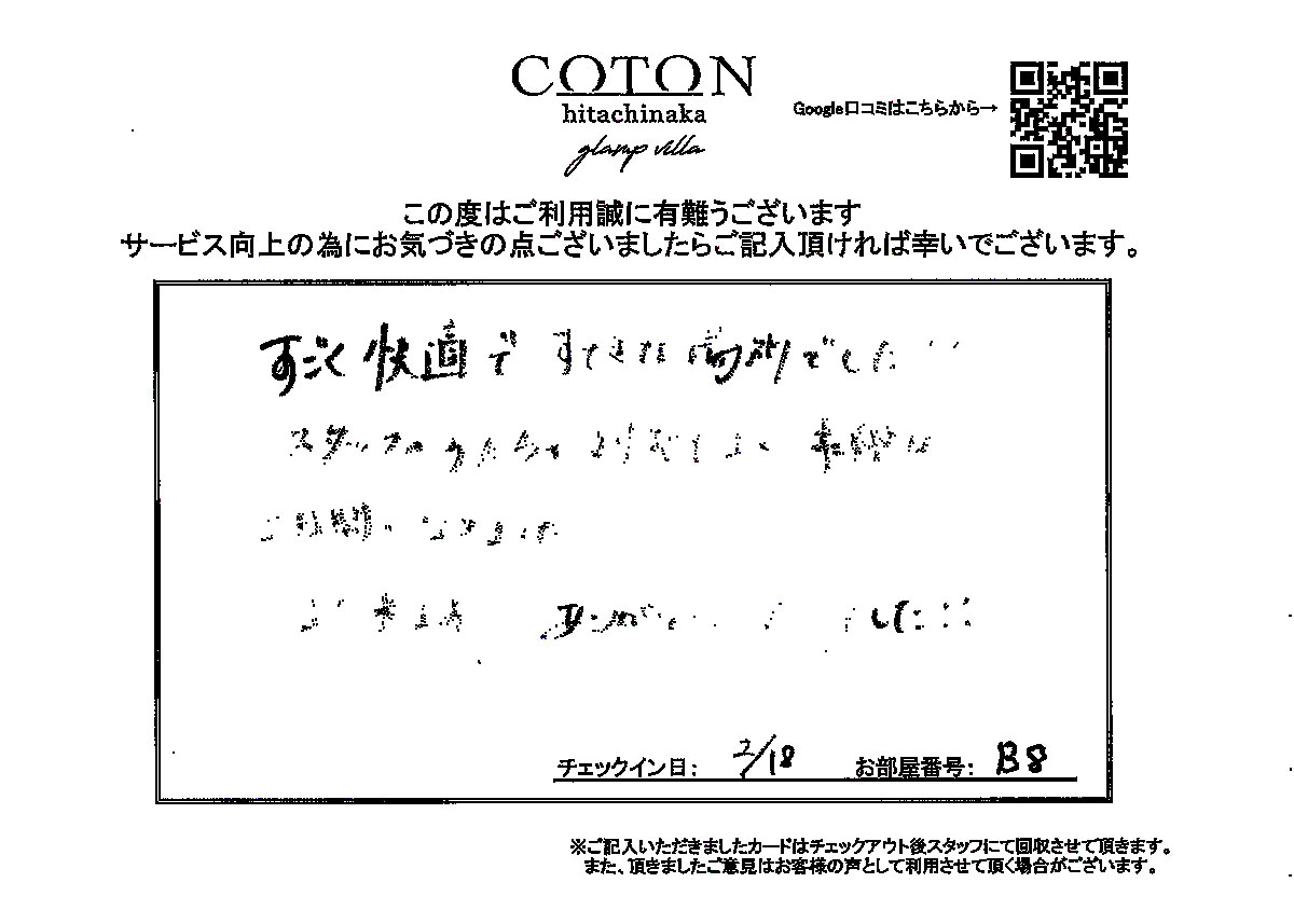 COTONさんの雰囲気に惹かれて宿泊を決めました。